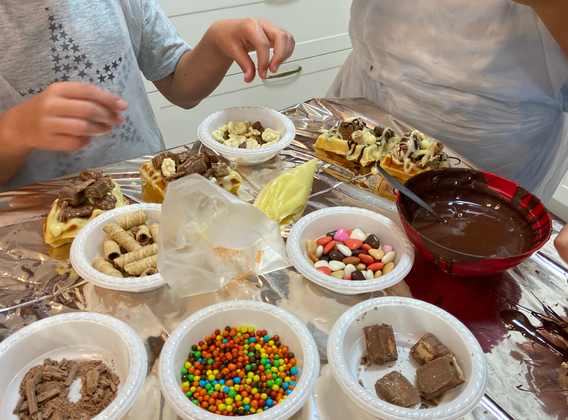כל משתתף יוכל לבחור ממרחים ותוספות לקישוט הוואפלים.