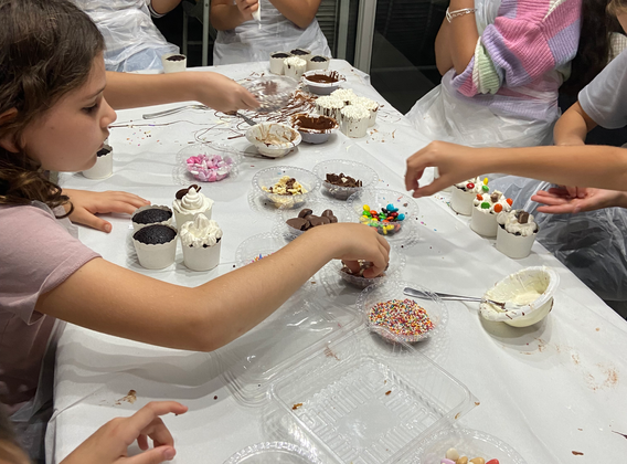 לסיום, נקשט ונעצב שולחן קינוחים ענק, שיכלול את כל היצירות שיצרנו.